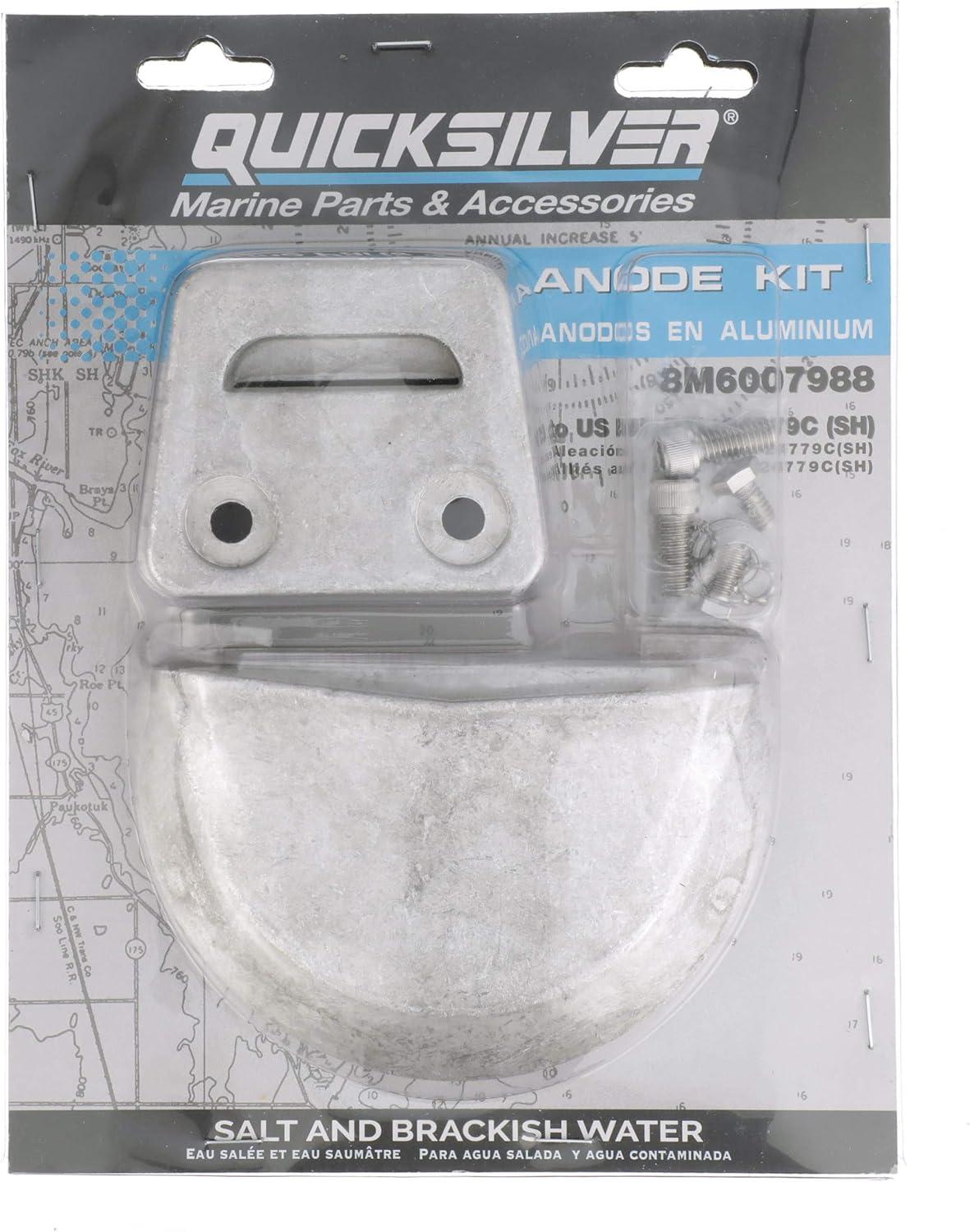 Complete, replacement aluminum anode kit 8M6007988 fits Volvo SX sterndrives. Stainless steel hardware and installation hardware provided with easy instructions. Aluminum is 50% lighter and lasts up to 50% longer than zinc in harsh, saltwater environments and is more efficient in protecting the outboard, sterndrive and boat from galvanic corrosion. Protect your sterndrive from the harmful effects of galvanic corrosion. Inspect annually and easy to replace. Periodic maintenance and service helps protect your investment in your engine and your boating pleasure. See your owner's manual or service manual for specific application and instructions. The Quicksilver brand is the leader in delivering uncompromising engine oils, parts and accessories to the marine industry for over 65 years. Quicksilver is the premier supplier of Mercury Marine Original Equipment replacement engine parts, oils, and accessories, but also works to serve all Original Equipment brands in the marine and powersports industries. It has earned a loyal following by providing the highest quality products that are tested through some of the most rigorous environments and testing procedures. No aftermarket company comes close to the level of research and design as Quicksilver; buying Quicksilver is buying performance, protection and peace of mind.